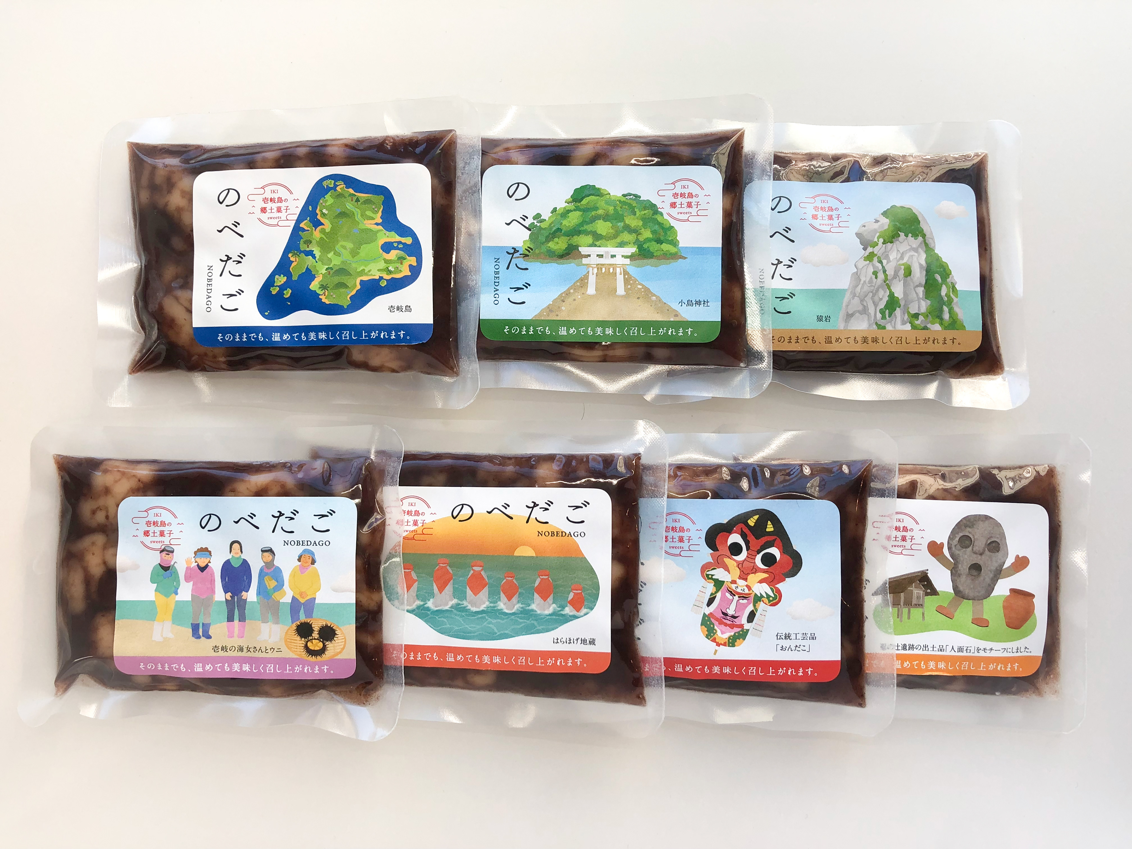 「のべだご」のパッケージイラストを担当。パッケージは全部で7種類あります。