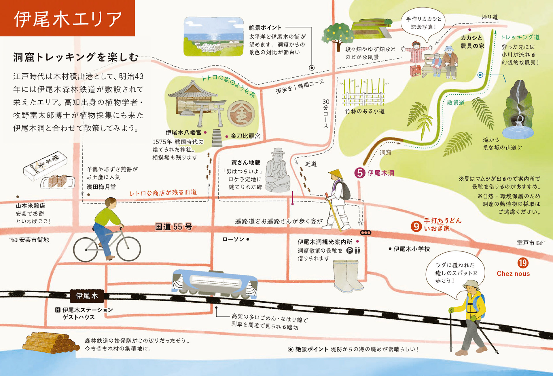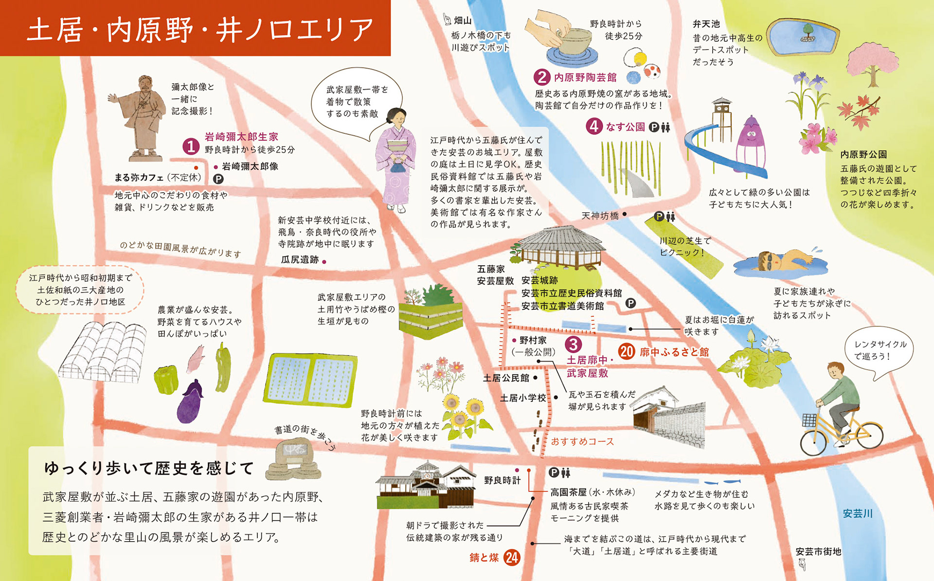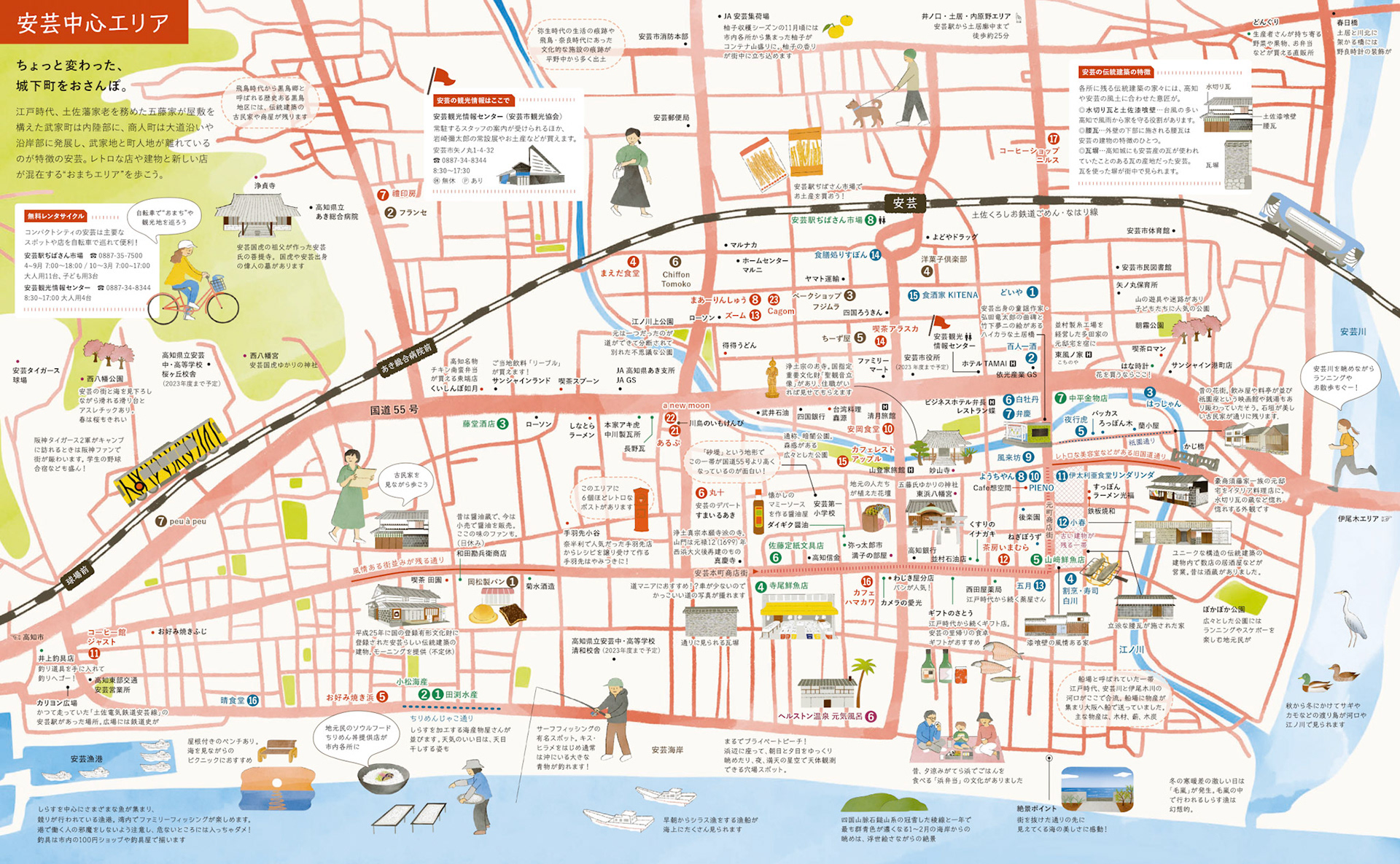 レトロな安芸まち歩きMAPのイラストを担当しました。